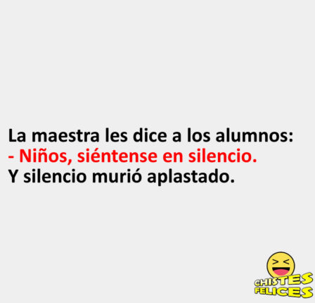 La maestra les dice a los alumnos: Niños, siéntense en silencio. Y silencio murió aplastado.