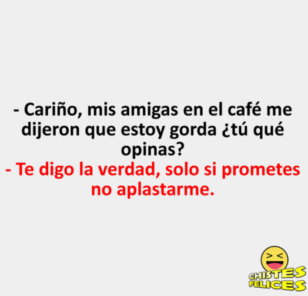 Cariño, mis amigas en el café me dijeron que estoy gorda ¿tú qué opinas? Te digo la verdad, solo si prometes no aplastarme.