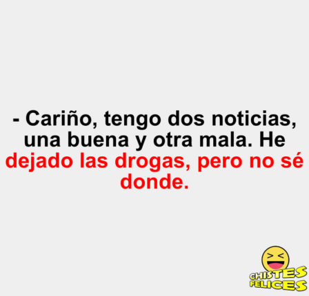 – Cariño, tengo dos noticias, una buena y otra mala. He dejado las drogas, pero no sé donde.