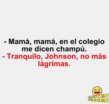 – Mamá, mamá, en el colegio me dicen champú.– Tranquilo, Johnson, no más lágrimas.