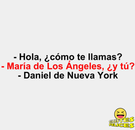 – Hola, ¿cómo te llamas?– María de Los Ángeles, ¿y tú?– Daniel de Nueva York