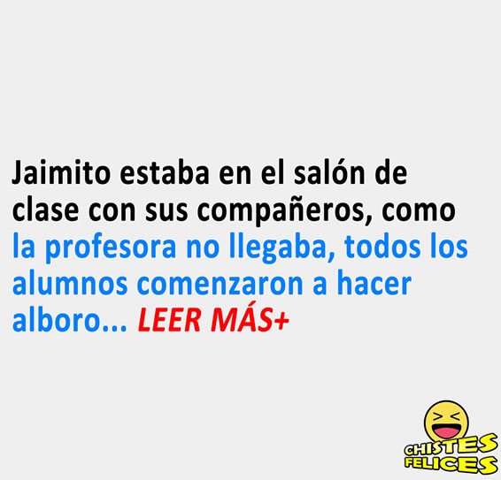 Jaimito estaba en el salón de clase con sus compañeros, como la profesora no llegaba, todos los alumnos comenzaron a hacer alboroto.