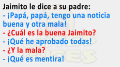 Y en eso salen las niñas corriendo como había dicho la maestra y Jaimito las mira y les dice: