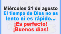 Miércoles 21 de agosto El tiempo de Dios no es lento ni es rápido… ¡Es perfecto! ¡Buenos...