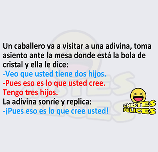 Un caballero va a visitar a una adivina, toma asiento ante la mesa donde está la bola de cristal y ella le dice: