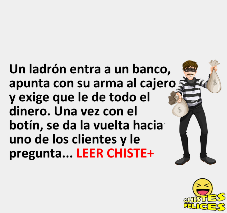 Un ladrón entra a un banco, apunta con su arma al cajero y exige que le de todo el dinero. Una vez con el botín, se da la vuelta hacia uno de los clientes y le pregunta: